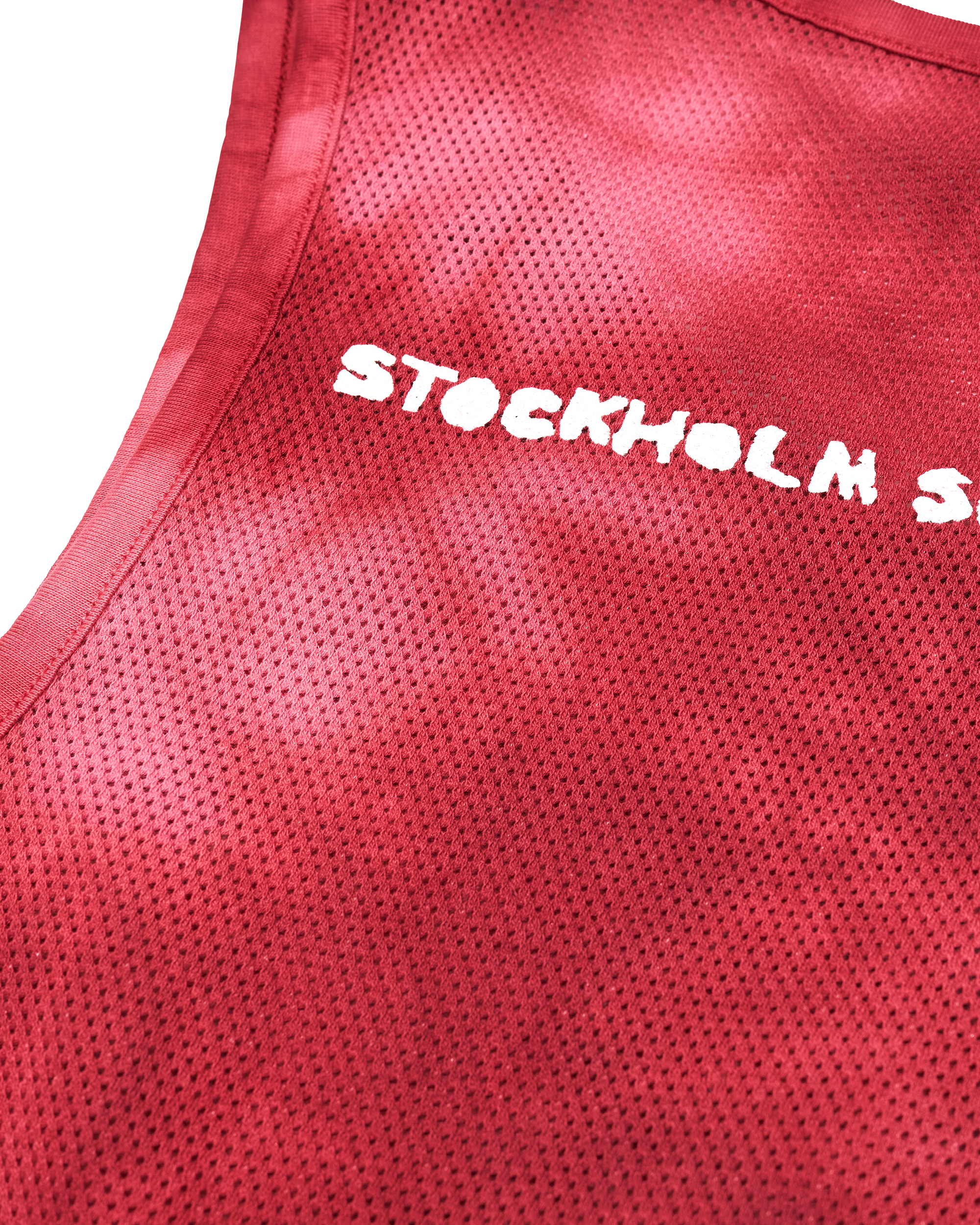 Stockholm Surfboard Club batik dyed mesh tank top with back screen print.